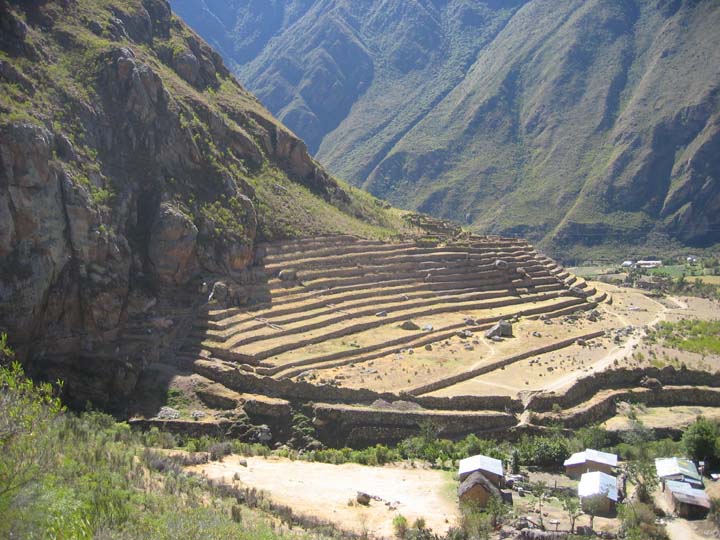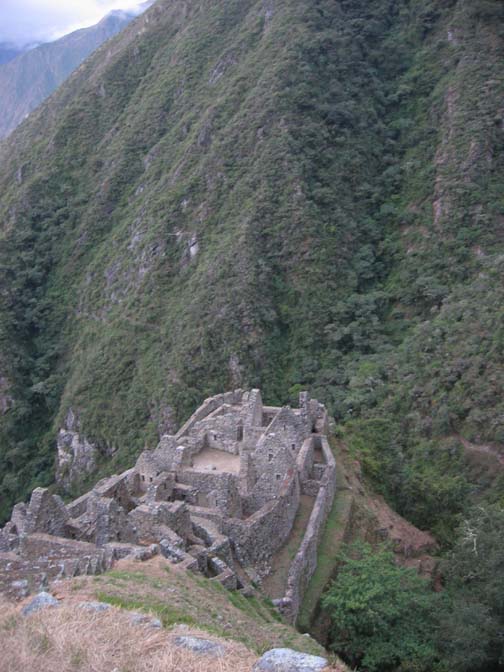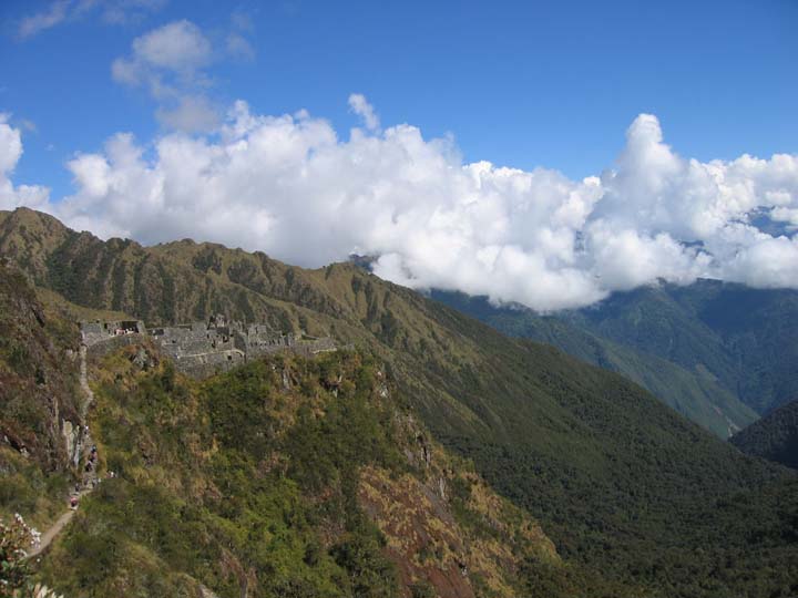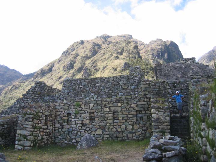 Onto the trek itself. The first day, we had a simple hike along a river, beneath a giant mountain, and alongside two small Incan ruins. Here is a picture of one of them, which is a town called Llactapa. We hiked for about five easy hours this day.