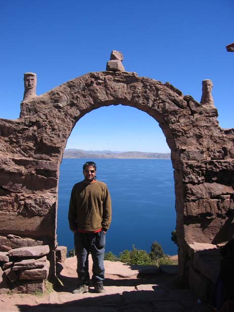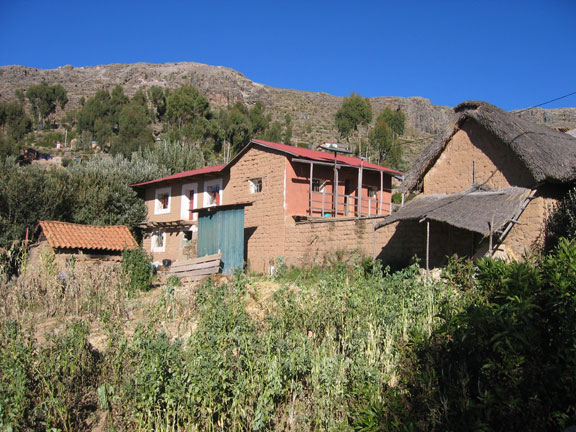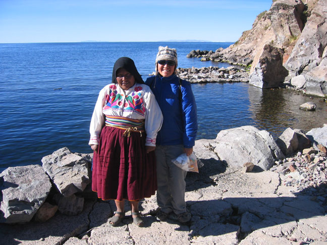 On Monday, we took a bus to Puno, which is a town on the Peruvian side of Lake Titicaca. We setup a two day tour to start the following day. On Tuesday our tour started with a 3 hour boat ride to the island of Amantani. Here, our tour group arranged for us to stay with a host family for the night. When we arrived, a few hundred islanders we on the dock to greet us. We met the mother of our host family and followed her to her house where she had prepared lunch for us. The food we ate was typical islander food, which was Quinua (a type of grain) soup and a bowl of potatoes. Afterwards we played a game of soccer with some of the local kids on the islands. Then we went for a hike to the top of the island, where there was another old Inca Temple. From here we watched the sunset. Afterwards, we prepared for a party that the folks in town prepared for us. We got dressed in the local fashion, and headed to the community center. Here, two Andean style bands played music and we learned the local style of dance.
