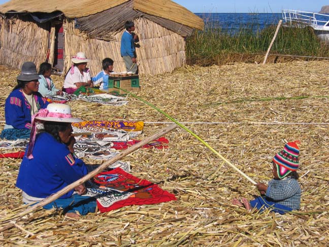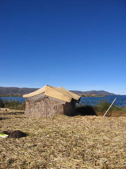 The next day we headed to visit the the island of Taquila and then the floating islands and Uros. The Uros are an old tribe which lives on floating islands made out of reeds. The Uros originated around the 1500’s in Bolivia and migrated over time to Lake Titicaca. There are two theories as to how they started living on their floating islands. The first theory was that at the time, this was a Spanish territory, and the Spanish imposed heavy taxes on the Uros. To avoid these taxes, the Uros people built these floating islands to avoid the Spanish. The other theory was that the Uros built the islands as a place to live to espcape the Incas. Our boat stopped at a small floating island for about 20 minutes or so. Eight families live on this island. Everything is made from the reed, which is a type of thick weed that grows in the water. The base of the island is made out of the reed route, after a few years, the weed routes mesh together and provide a stable floating surface to live on. More reeds are then added on top of the reed routes to make a soft surface. The houses and boats are made of the reeds also. This was a very primitive community, living exactly as their ancestors did hundreds of years ago.