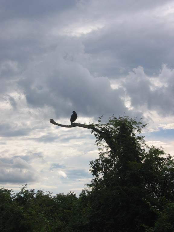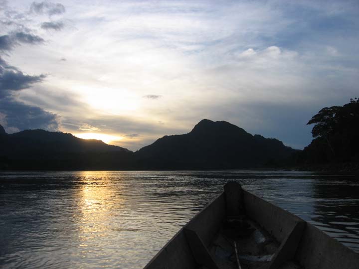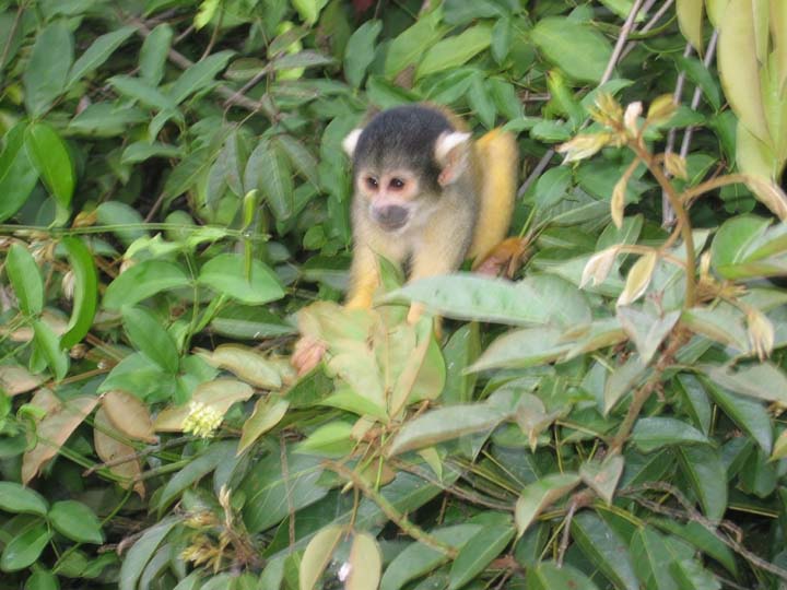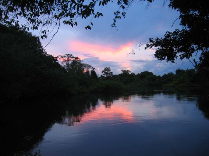 On Monday we embarked on a three day tour of the surrounding pampas, which is similar to an enormous swamp filled with animals, birds, reptiles, etc. We went with a group of 9 people. We drove for three hours outside of town where we waited for two small boats to come pick us up and drive us up river. While we were waiting, a family of freshwater pink dolphins began playing in the pool in the river in front of us.. Our guides told us the dolphins are curious and friendly so we quickly threw on our bathing suits and jumped in with the dolphins. We swam with the dolphins for about 15 minutes or so. The dolphins would swim around us and underneath us, but would never touch us. They would come within 15 feet or so or where we were swimming. After the dolphin swim, we jumped in the boats and rode a few hours upstream to our base camp for the next three days. On the boat ride, we passed by three types of monkeys, and numerous types of very large birds. The sunset that night was pretty nice.