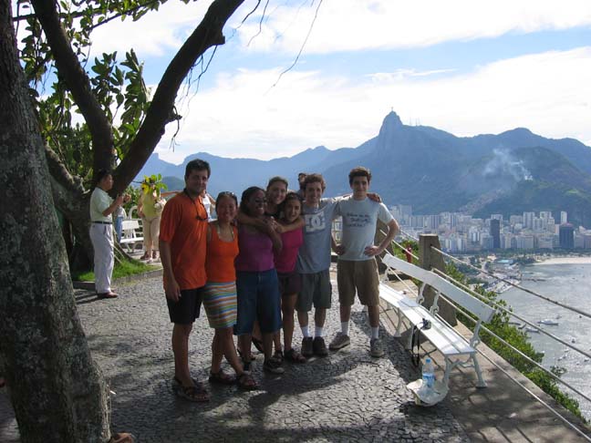 On Wednesday we visited another top tourist attraction…Pao de Azucar, or Sugarloaf in English. This is a mountain that sits right on the edge of the bay. You can take a tram from a nearby mountain to get to the top. We opted to hike to the top of a nearby mountain instead to get some exercise. It was only a 30 minute hike up to the top, but it was 100 degrees that day, so the climb was more draining that it should have been. Here is a picture of the view atop this mountain.