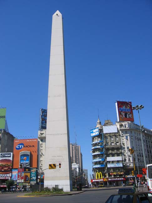 After we arrived and settled on Saturday we explored Buenos Aires a bit. We are staying right next to the Congress building, which is modeled after the US Congress building. Another landmark, the Obelisco, resembles a famous landmark in Washington DC. As with many of the cities we have seen thus far on the trip, this city has a strong European influence which is evident in the buildings and streets. Here is a great picture of the Obelisco, with two more famous American corporate landmarks on each side. Take a closer look.