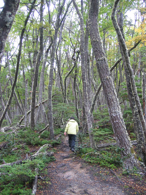 We spent the day in nearby Tierra del Fuego National Park. The seasons down here are opposite the seasons in the US. Right now it is the end of autumn, approaching winter. The temperature is probably around 40 degrees Fahrenheit.  Apparently most visitors come during the summer months of January and February so the park was empty for us. We went on a 7 mile roundtrip hike up to the top of a mountain called Cerro Guanaco.